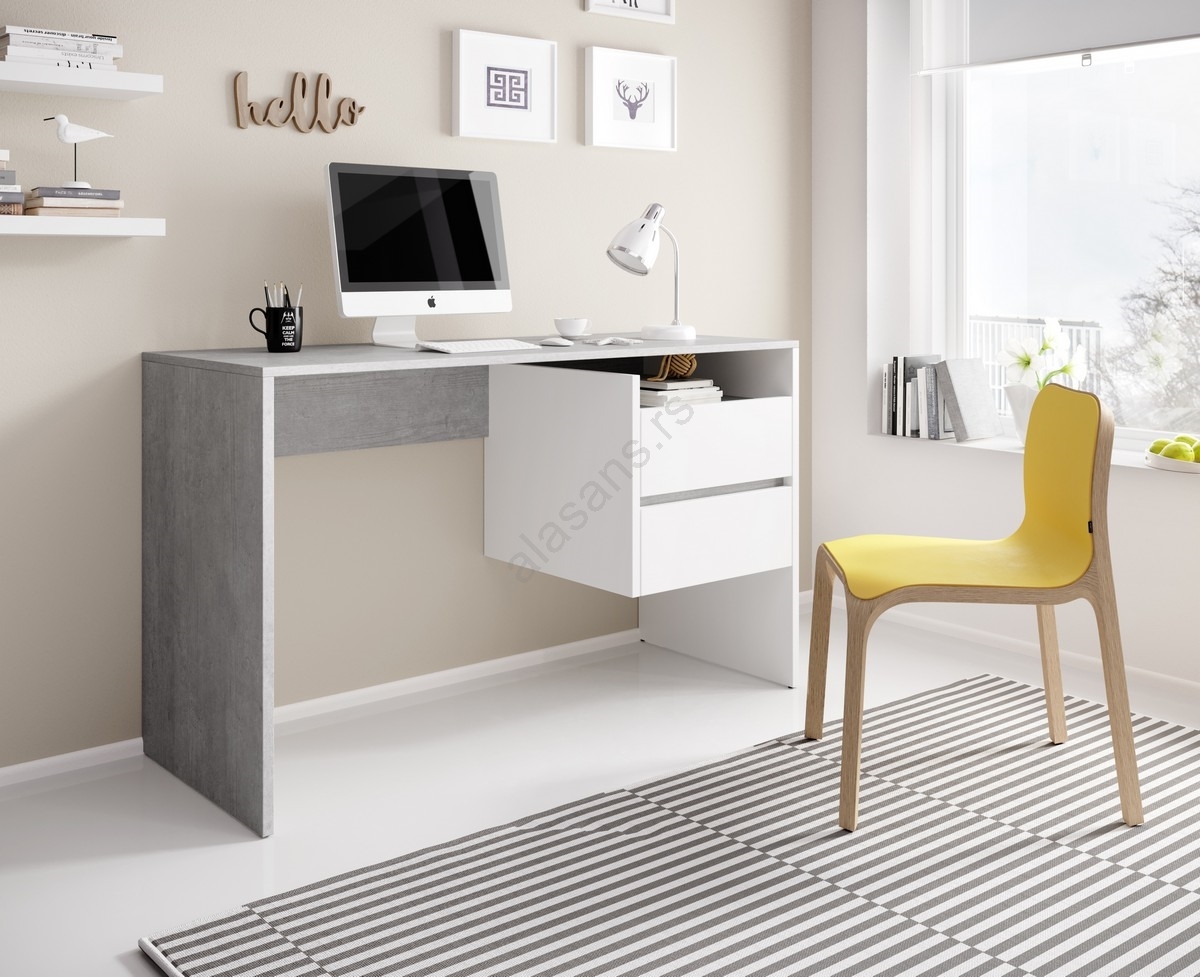 Radni sto sa fiokama MARLO sivi beton/bela | Alasans