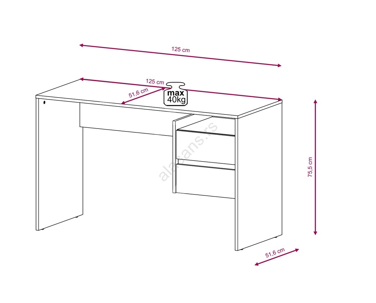 • Ima bočnu policu sa dve fioke, idealne za odlaganje knjiga, kancelarijskog pribora ili dekoracija.