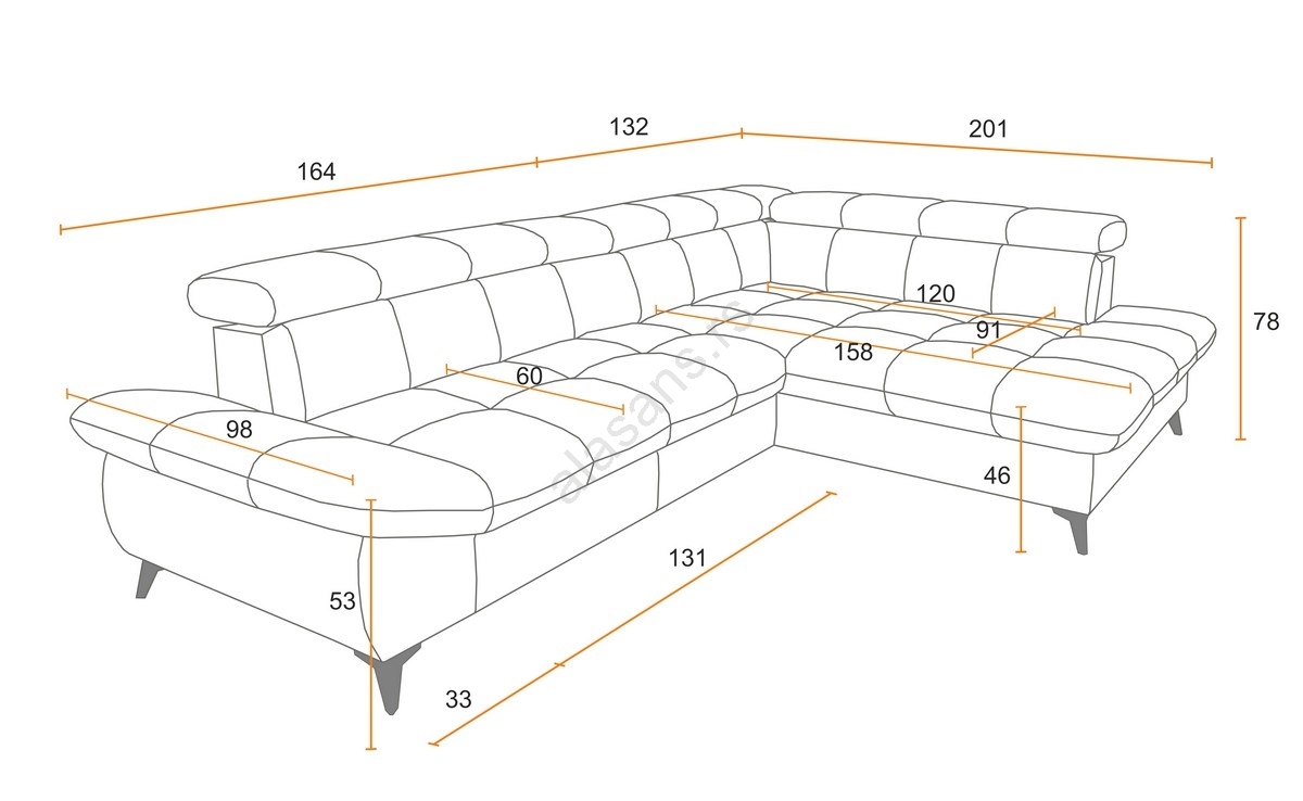 Rastegljiva ugaona garnitura u obliku L MARANO, desna, narandžasta | Alasans