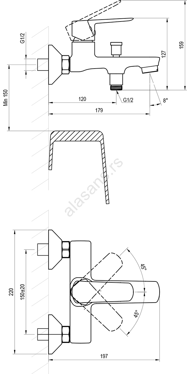 • Jednoručna baterija za kadu u hromiranom izdanju.