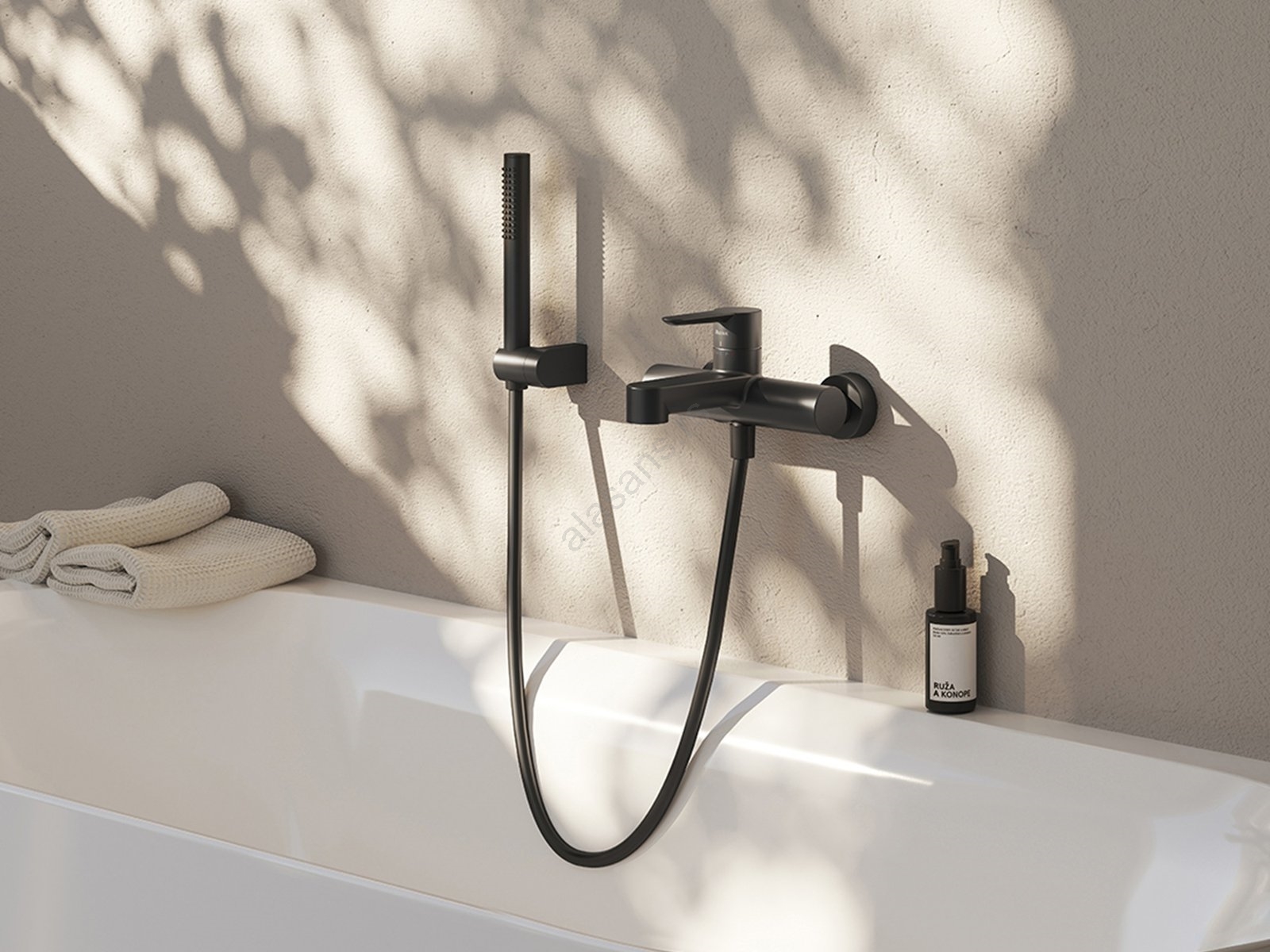 • Ručna tuš slušalica sa jednim režimom mlaza ističe se modernim crnim izvedbom.
