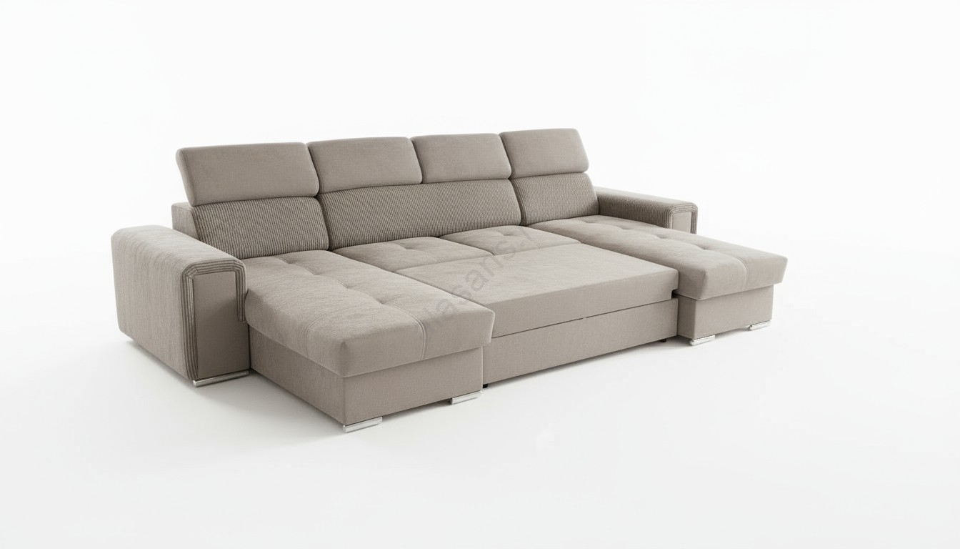 • Razvlačna ugaona garnitura u obliku slova U sa univerzalnim uglom i spremištem SALVADA bež