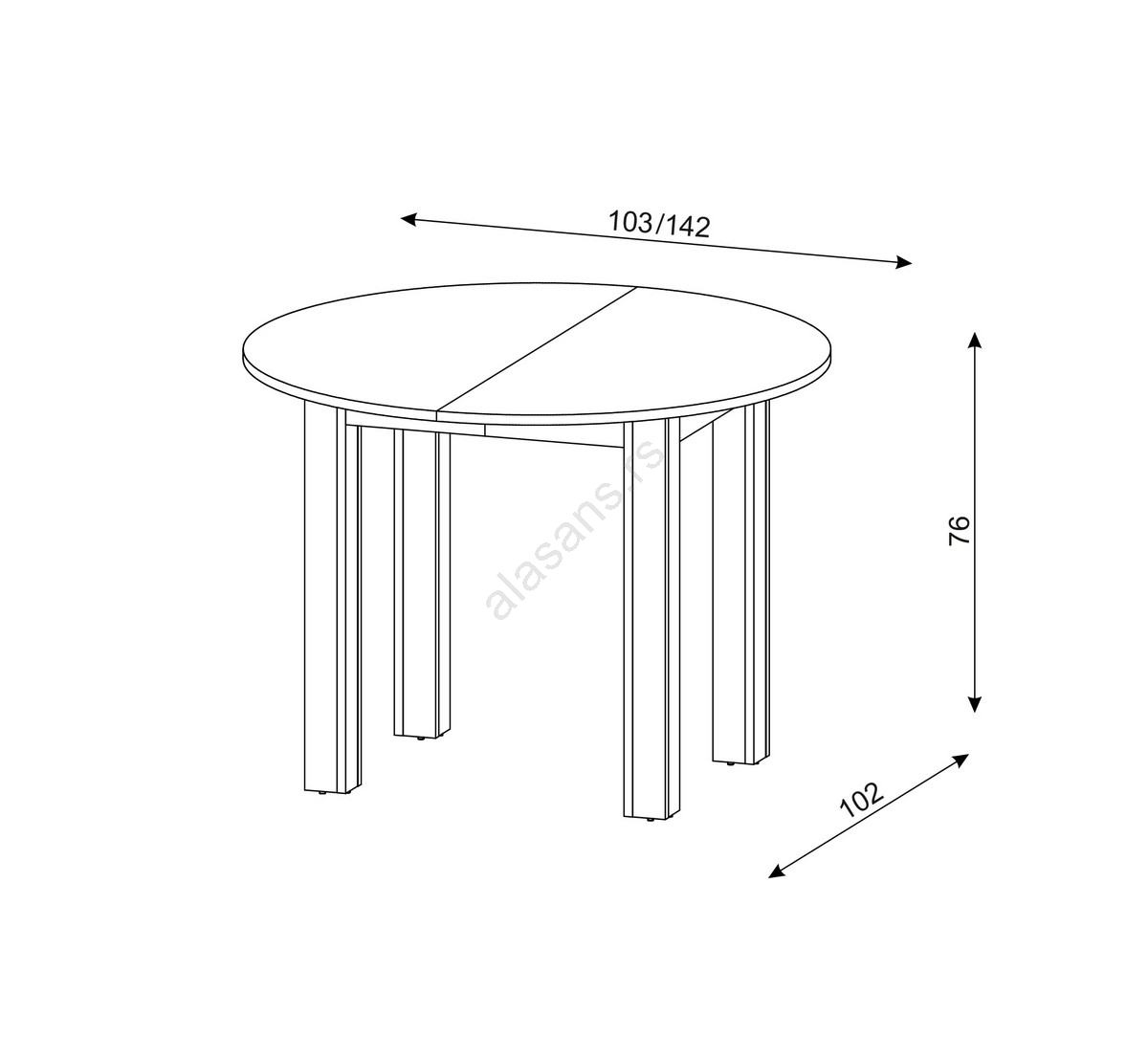 Dimenzije rasklopljenog stola: 142 x 102 cm.