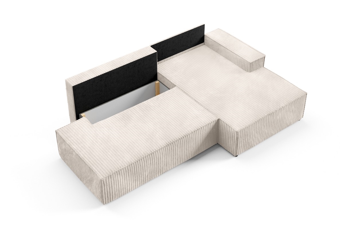 Razvlačna ugaona garnitura TERAMO, desna, u obliku L, sa spremištem, bež