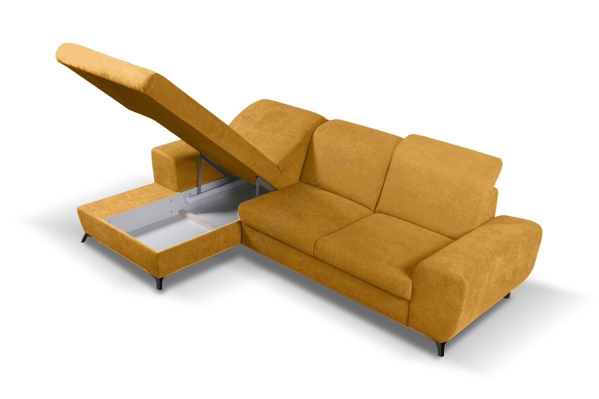 • Razvlačna ugaona tapacirana garnitura sa prostorom za odlaganje u obliku L ALTA leva žuta