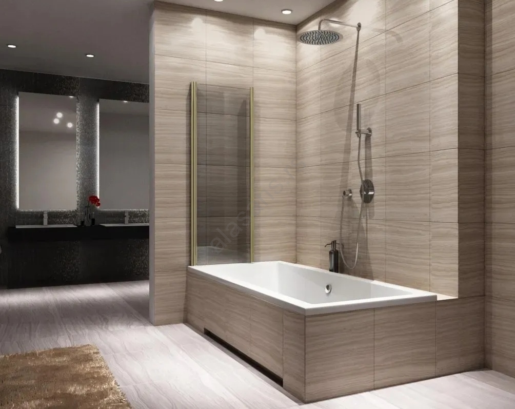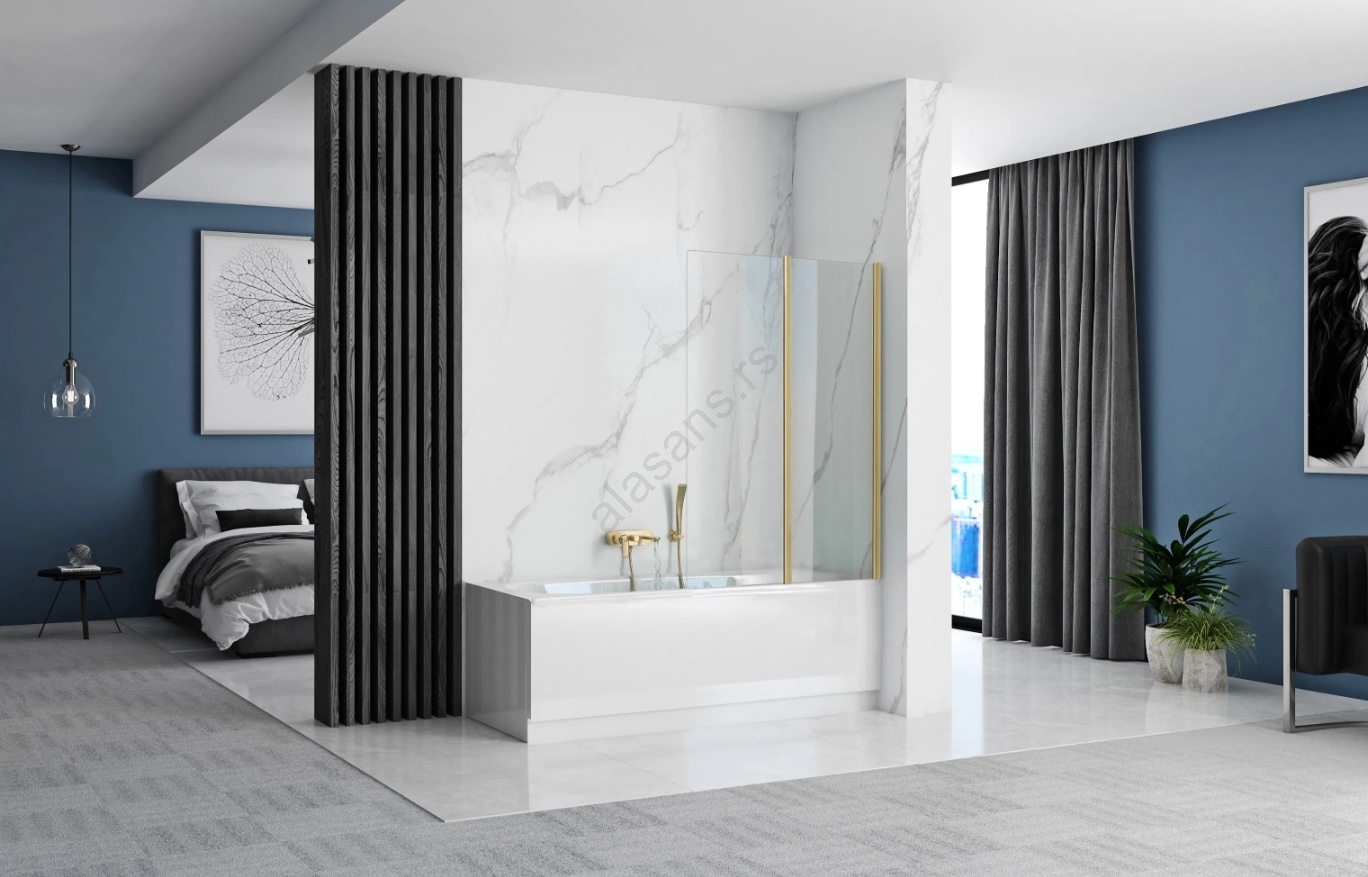 REA-K9777 - Sklopivi paravan za kadu AGAT 140x100 cm brušeno zlato/prozirno staklo | Alasans