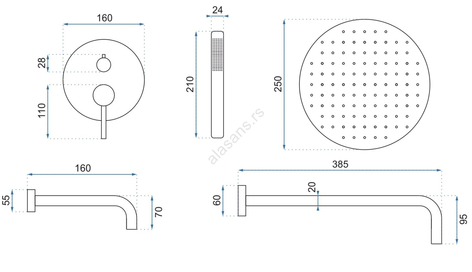 • Pakovanje sadrži: ugradna kutija, kompletna baterija, rameno, ručni tuš i glavna tuš glava, držač ručnog tuša, izlazna mlaznica, crevo 150 cm.