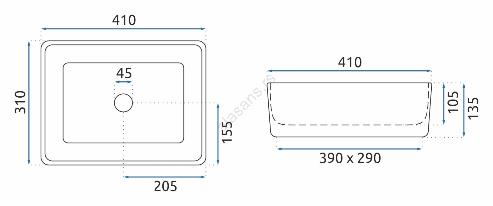 REA-U0952 - Umivaonik na ploču ANITA MINI 31x41 cm keramika/sjajna bela | Alasans