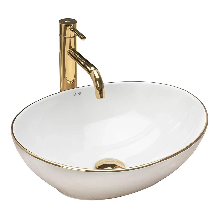 REA-U3287 - Umivaonik za ploču SOFIA 34,5x41 cm keramika/sjajna bela/zlatna | Alasans
