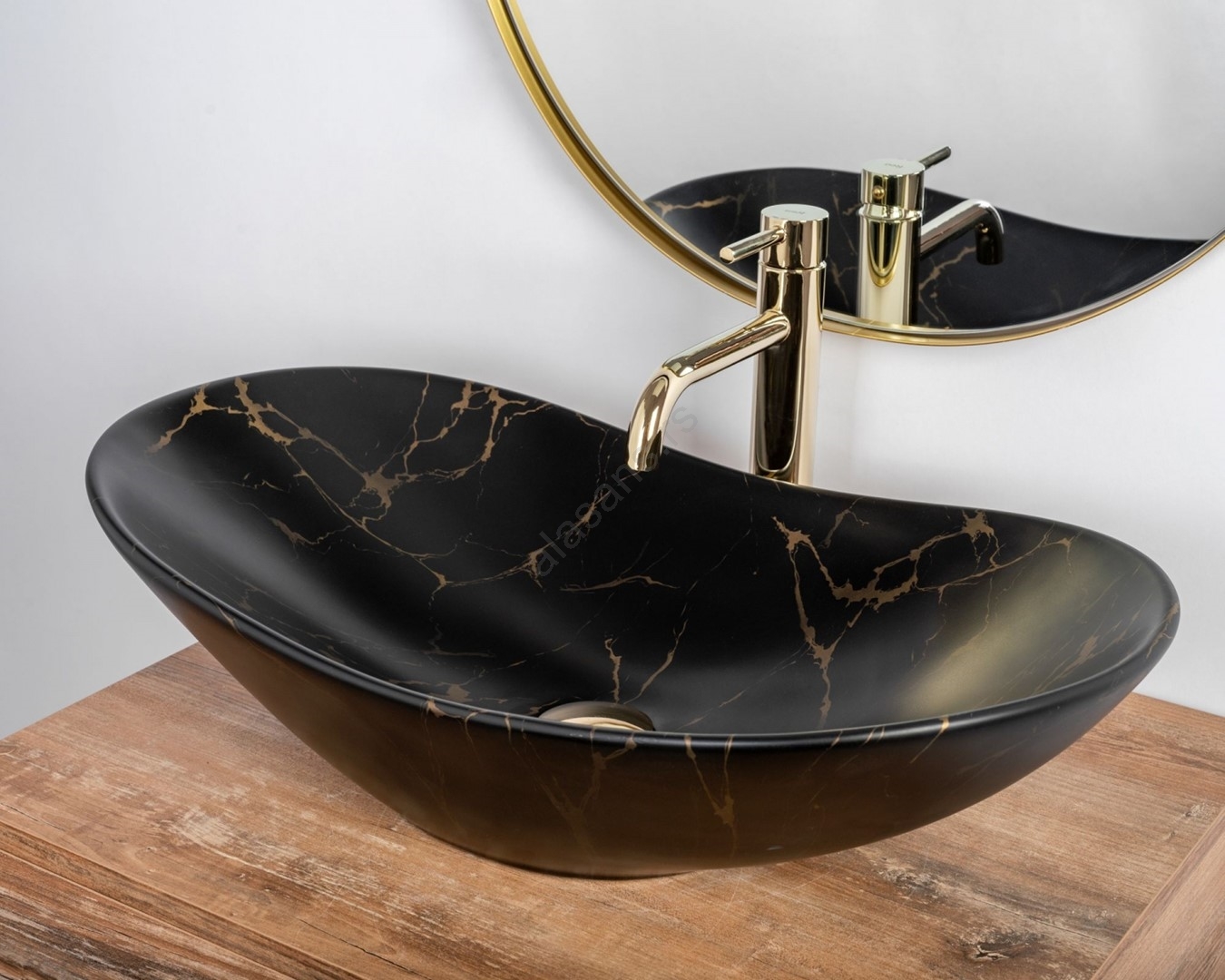 REA-U7478 - Umivaonik na ploču ROYAL 36x62 cm keramika/crna/dekor mermera | Alasans
