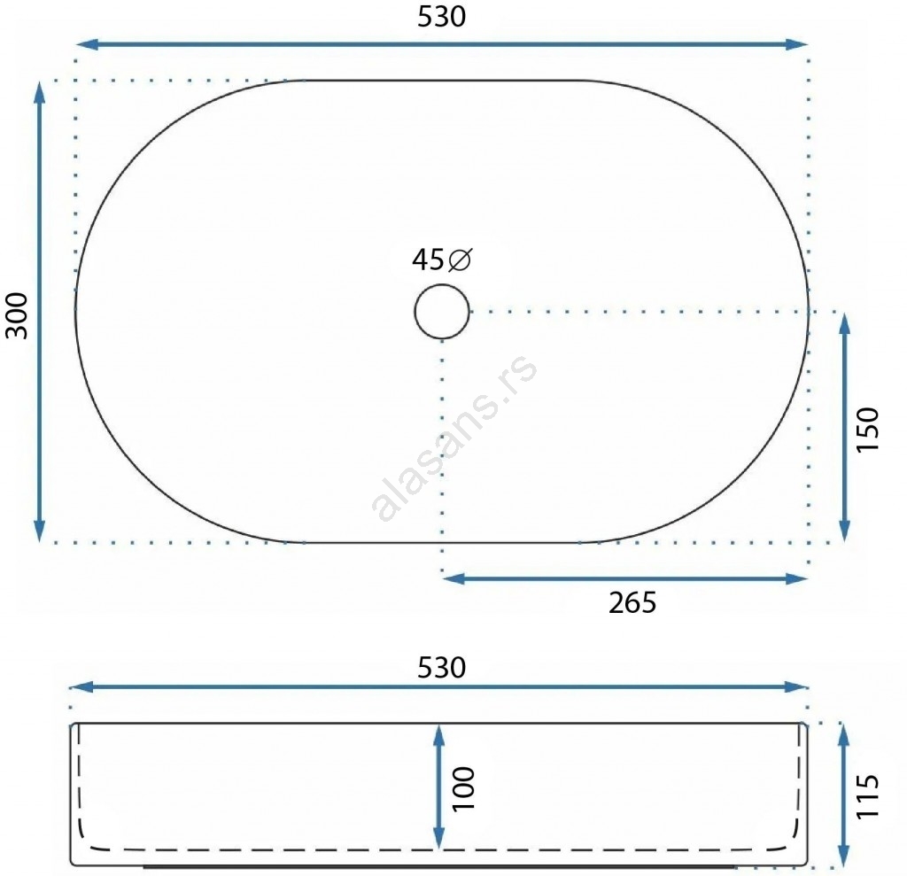 REA-U9108 - Umivaonik na ploču LAYLA 30x53 cm keramika/sjajna bela | Alasans