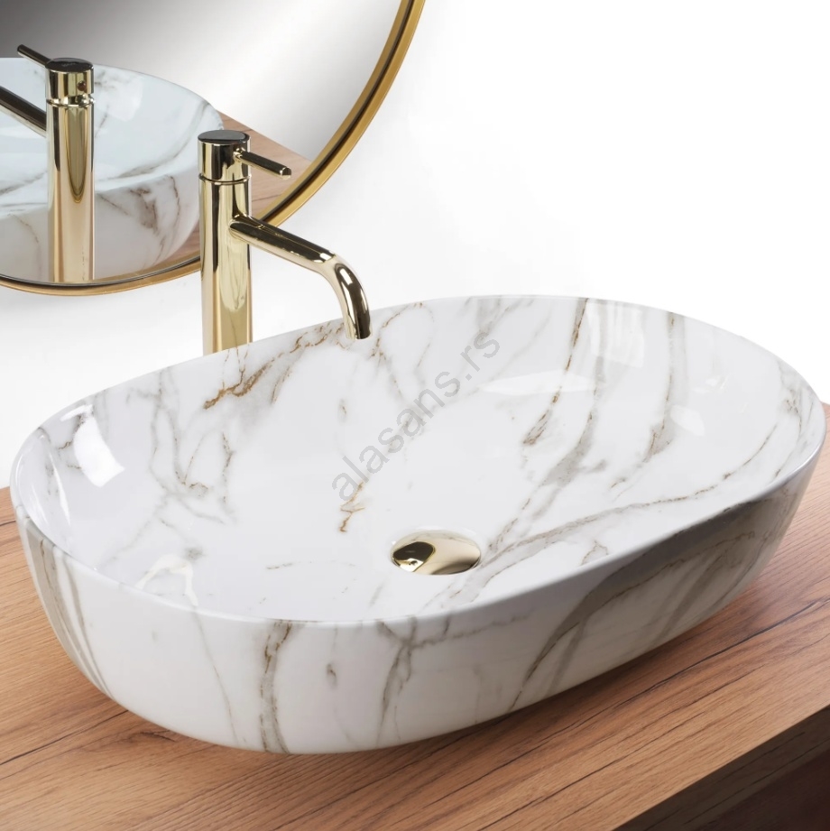 REA-U9656 - Umivaonik na ploču CLEO 41x60,5 cm keramika/dekor mramora | Alasans