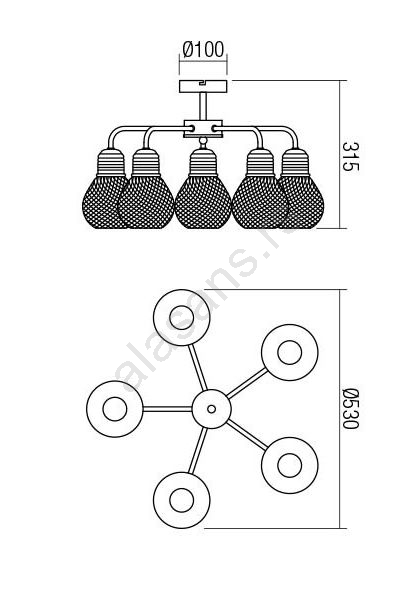 Redo 01-1577 - Luster na šipci EDISON 5xE27/42W/230V, prečnik 53 cm, crna/bakrena | Lampomanija