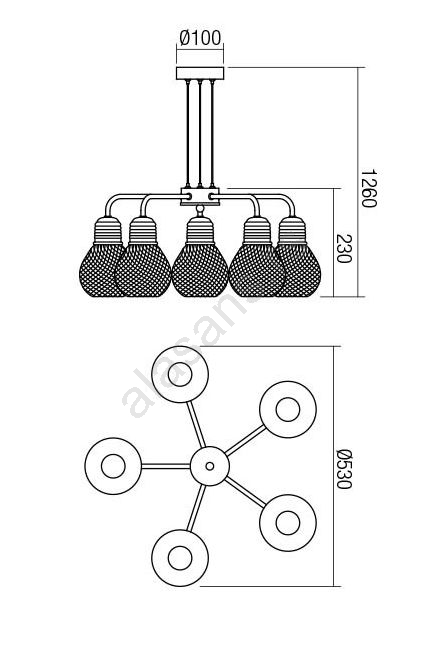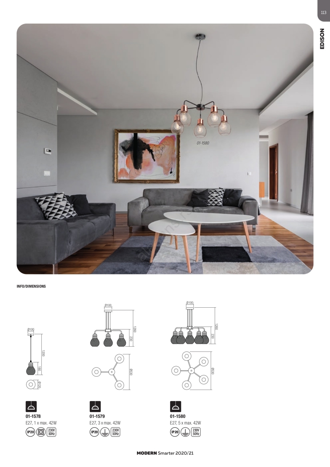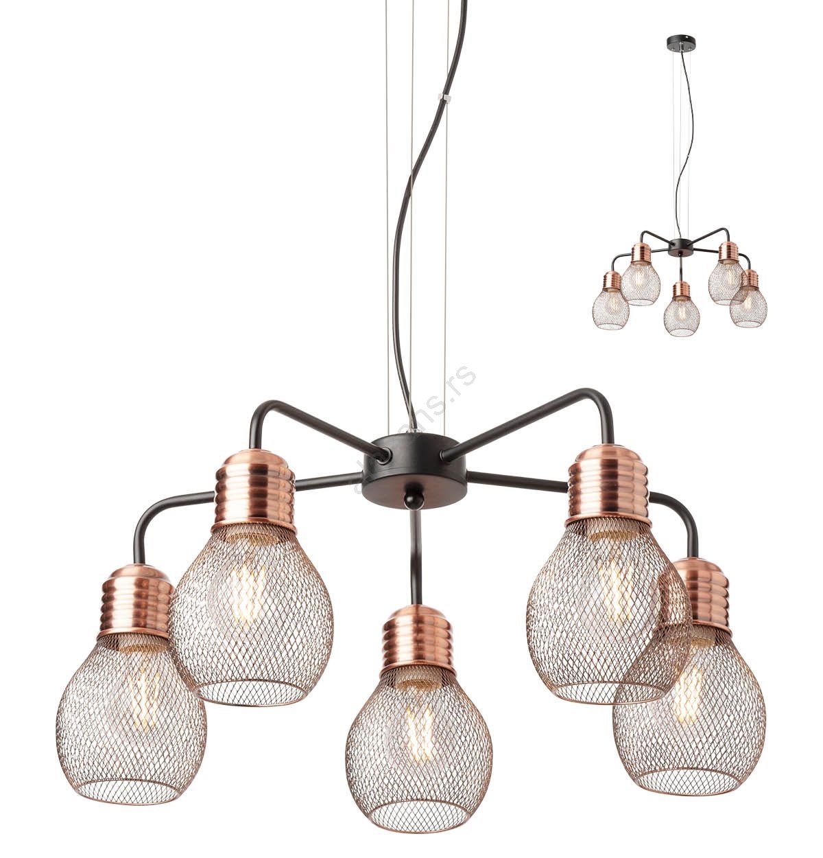 Redo 01-1580 - Luster na sajli EDISON 5xE27/42W/230V prečnik 53 cm crna/bakrena | Alasans