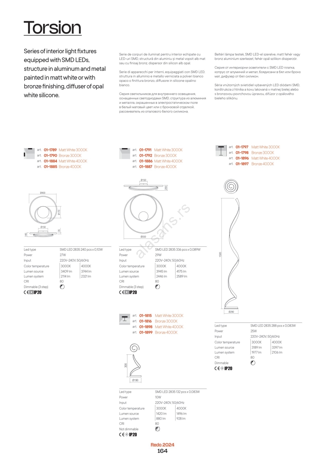 Redo 01-1793 - LED prigušiva luster na sajli TORSION LED/29W/230V bela | Lampomanija