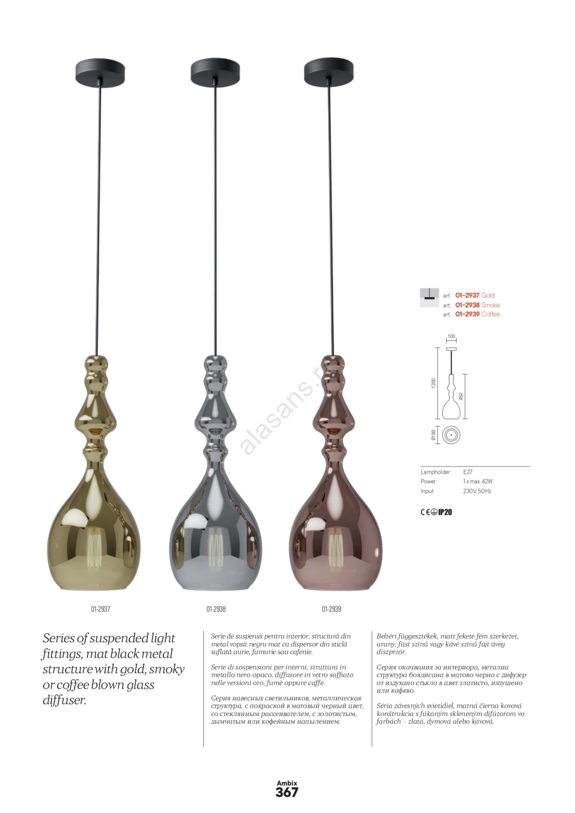 • Redo 01-2937 - Luster AMBIX na sajli 1xE27/42W/230V, prečnik 18 cm, zlatna