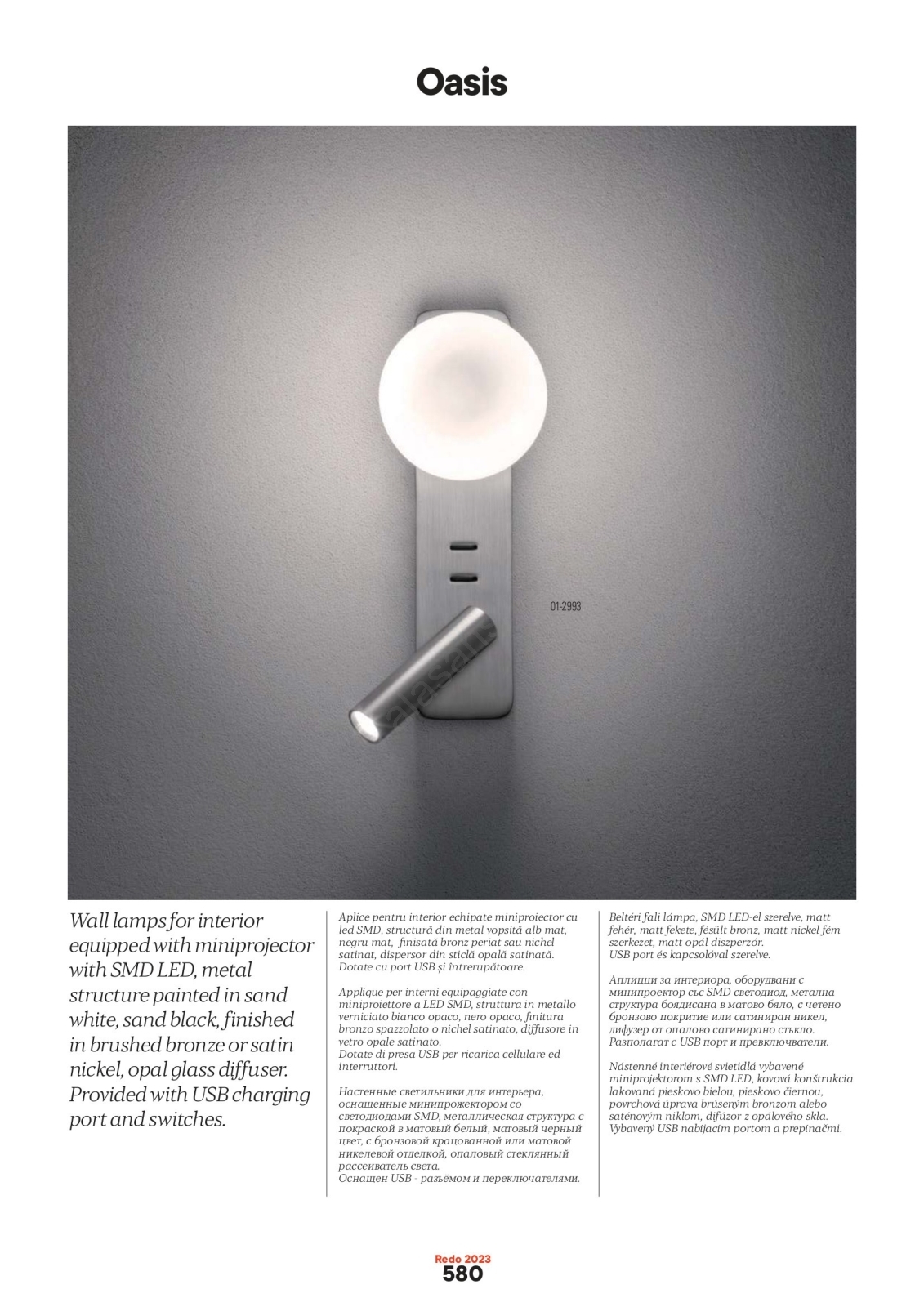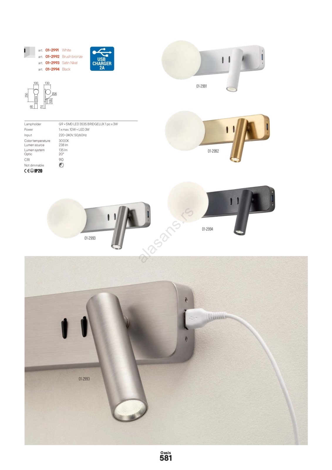 • Redo 01-2991 - LED zidna svetiljka OASIS LED/3W/230V + 1xG9/10W USB CRI 90 bela