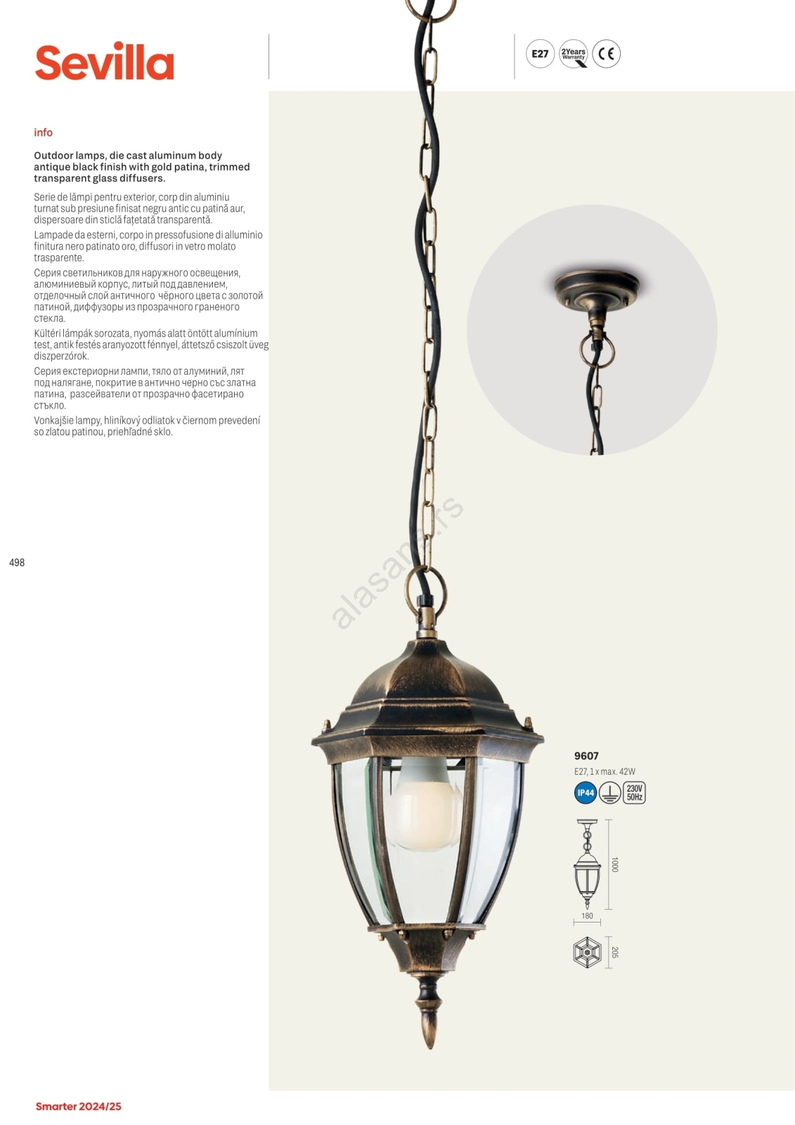 Redo 9605 - Spoljna zidna lampa SEVILLA 1xE27/42W/230V IP44 zlatna/patina | Alasans