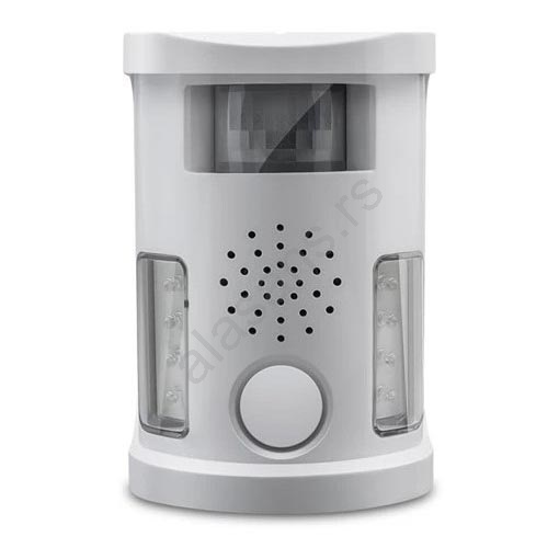 • U slučaju da uređaj detektuje kretanje u svom vidnom polju, aktivira ultrazvučnu sirenu koja će pouzdano oterati neželjenog posetioca.