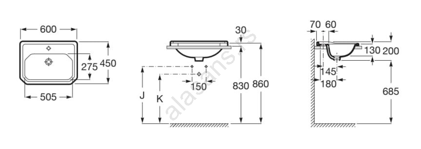Roca A3270A5000 - ugradni umivaonik CARMEN 60x45 cm keramika/bela | Alasans