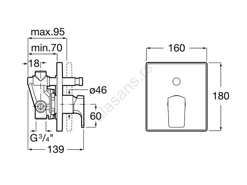 Roca A5A0B01C00 - Tuš baterija L90 za podometnu ugradnju, sjajni hrom | Alasans