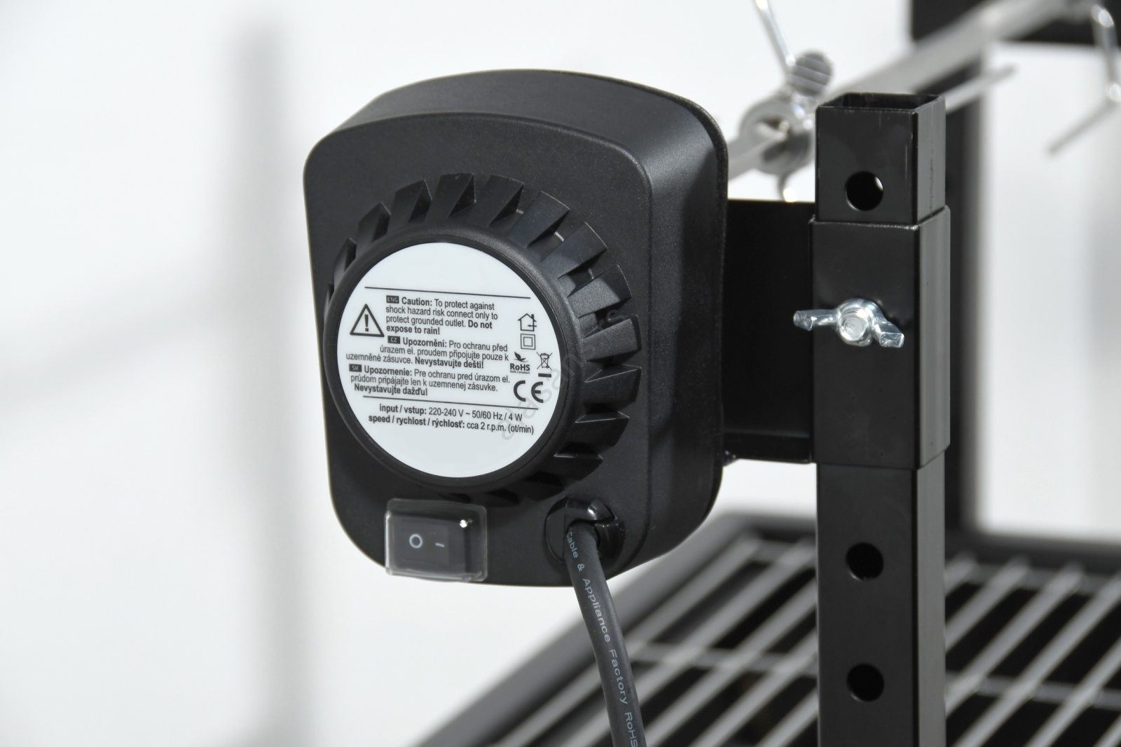 • Roštilj je dopunjen snažnim motorom napajanjem na 230V za okretanje jela brzinom od 2 obrtaja/min.