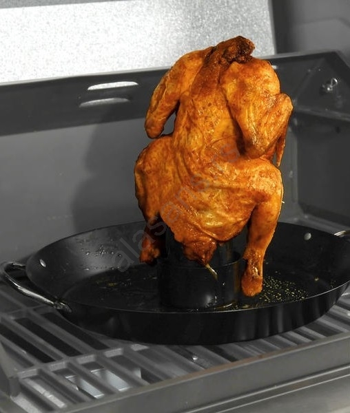 • Tiganj sa stalkom za pečenje piletine, sa prostorom za marinadu ili sokove piletine.