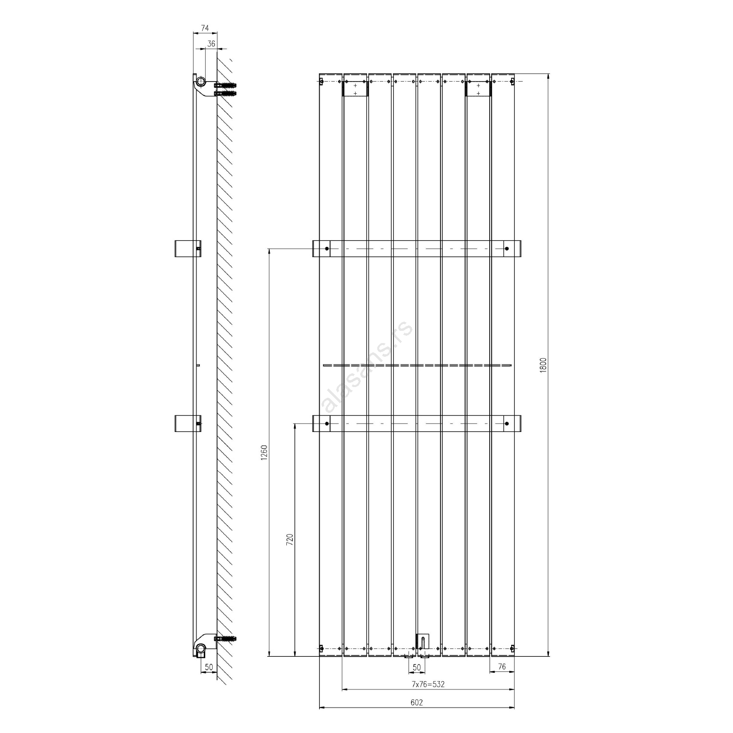 Sapho - Kupatilski radijator COLONNA 1205W/230V 60x180 cm, srebrne boje | Lampomanija