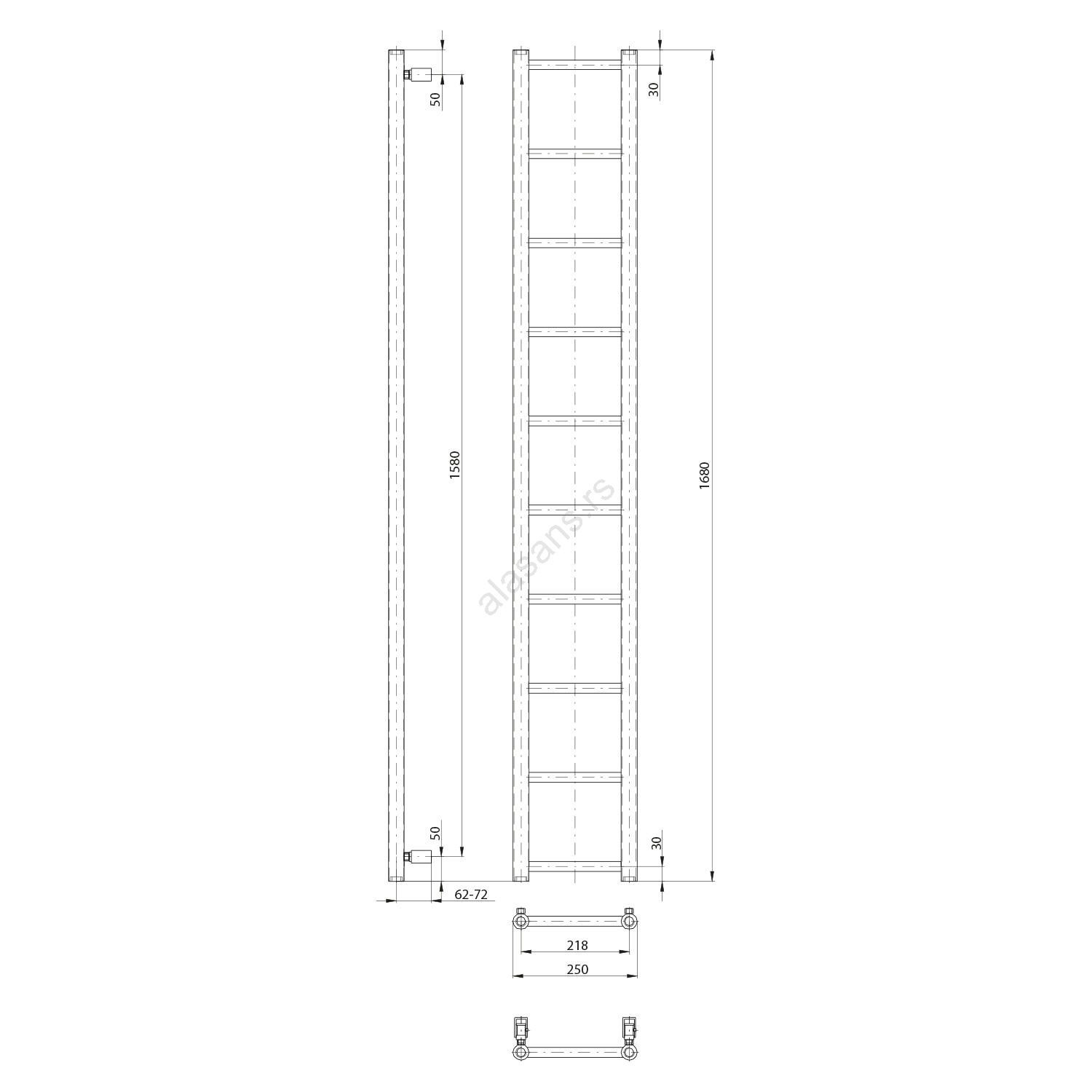 Sapho - Kupatilski radijator DINA, 282 W, 25 x 168 cm, mat crna | Lampomanija
