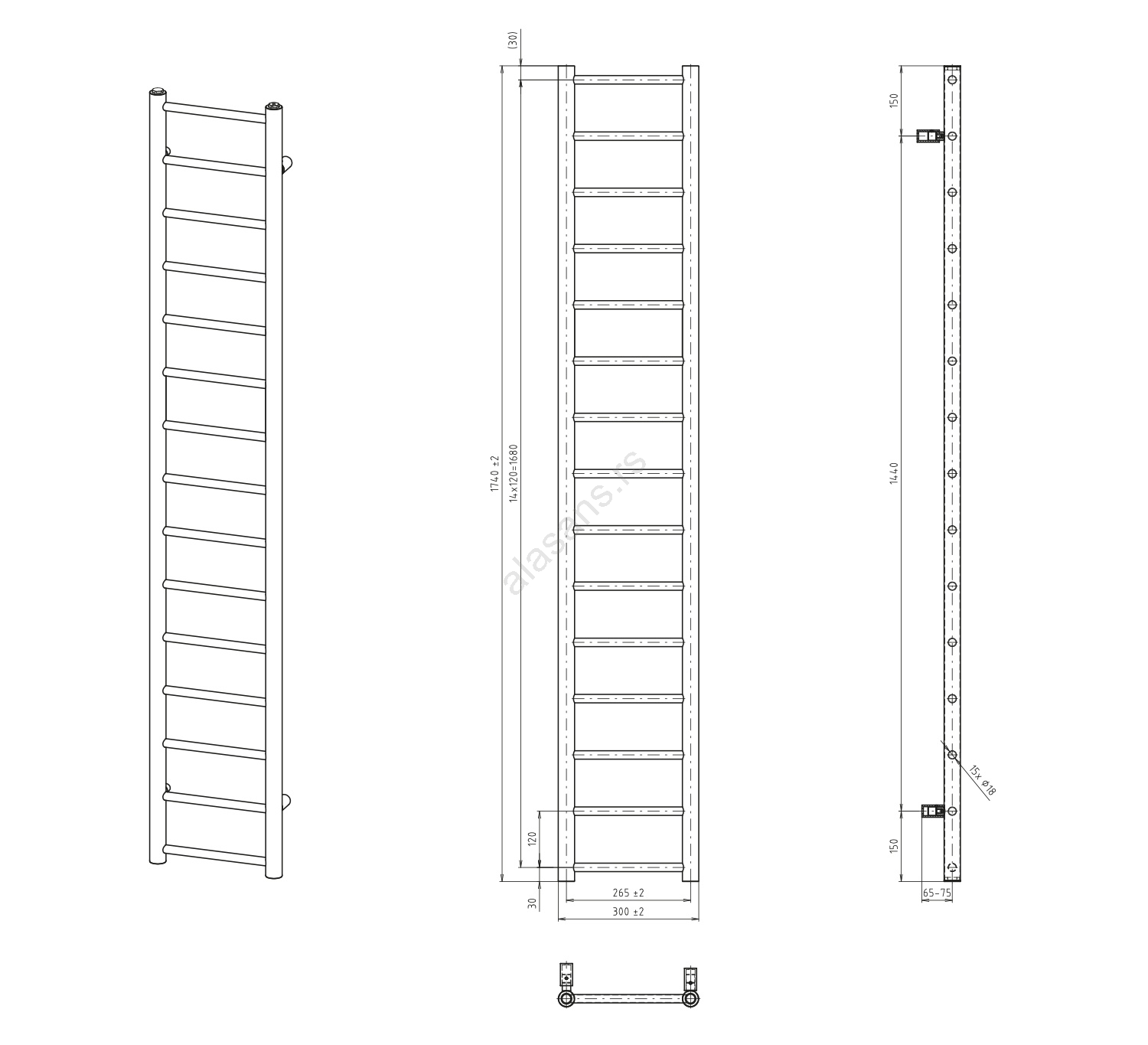 Sapho - Kupatilski radijator DINA 335W 30x174 cm mat crna | Lampomanija