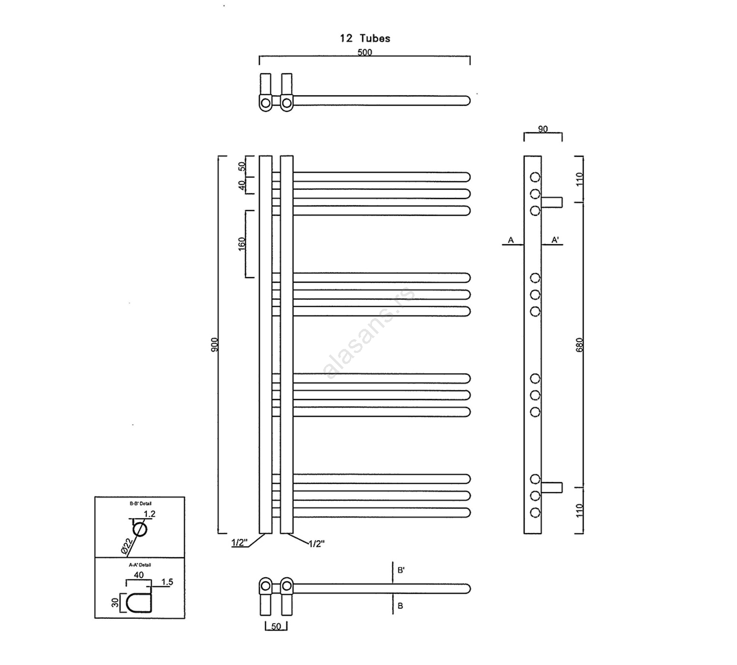Sapho - Kupatilski radijator DORLION 361W/230V 50x90 cm beli | Lampomanija