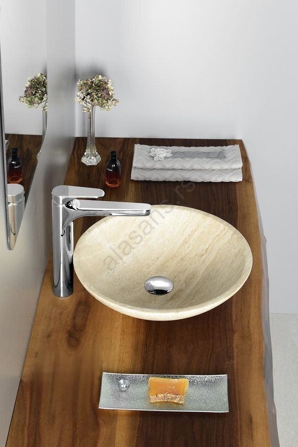 Sapho - Umivaonik na ploču BLOK prečnik 40 cm bež/travertin | Lampomanija