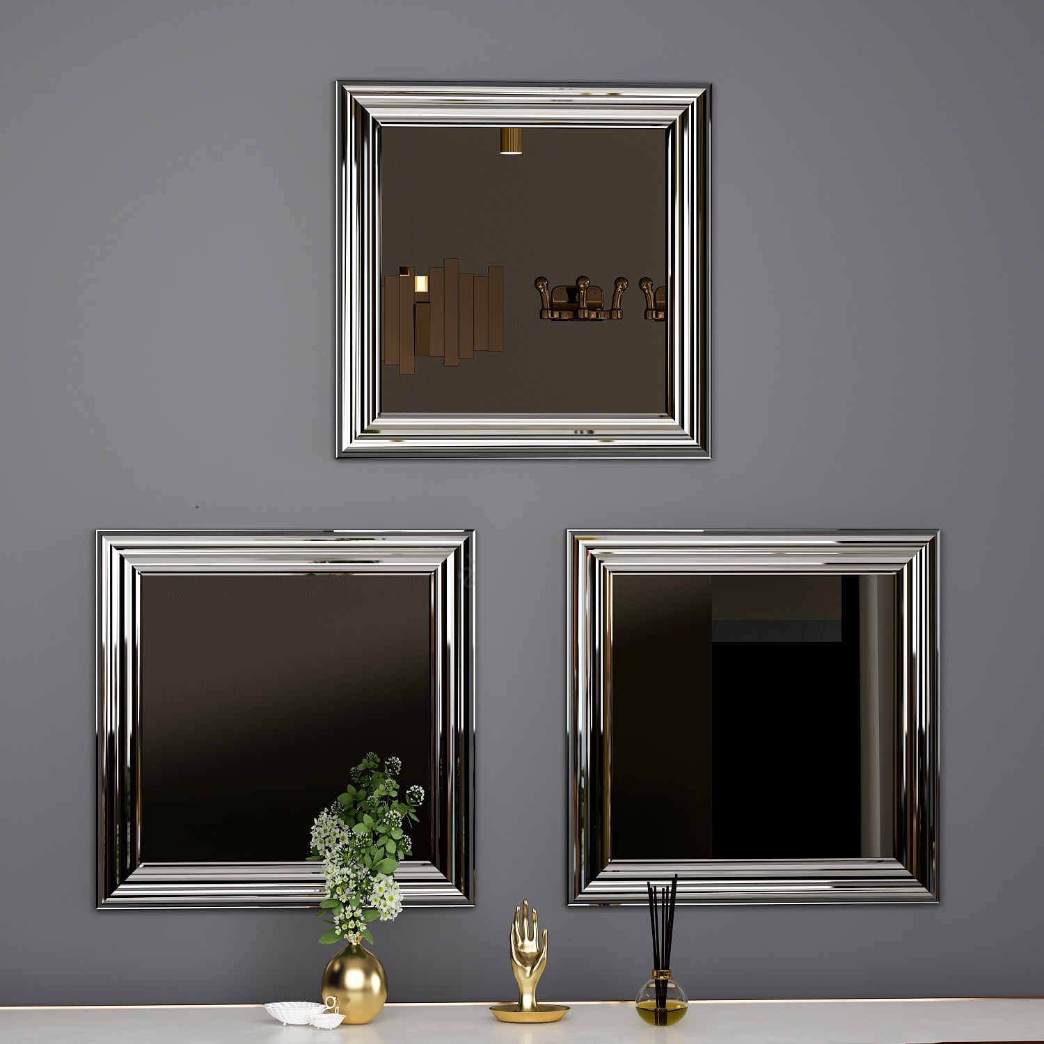 SET 3x zidna ogledala OTTO 40x40 cm, srebrne boje
