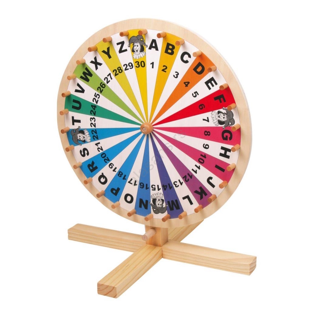Ovo kolo sreće je odličan dodatak za igre poput lutrije, igara reči ili maštovitih igara sa figuricama, sa brojevima od 1 do 30, slovima od A do Z i takođe 4 džokera.