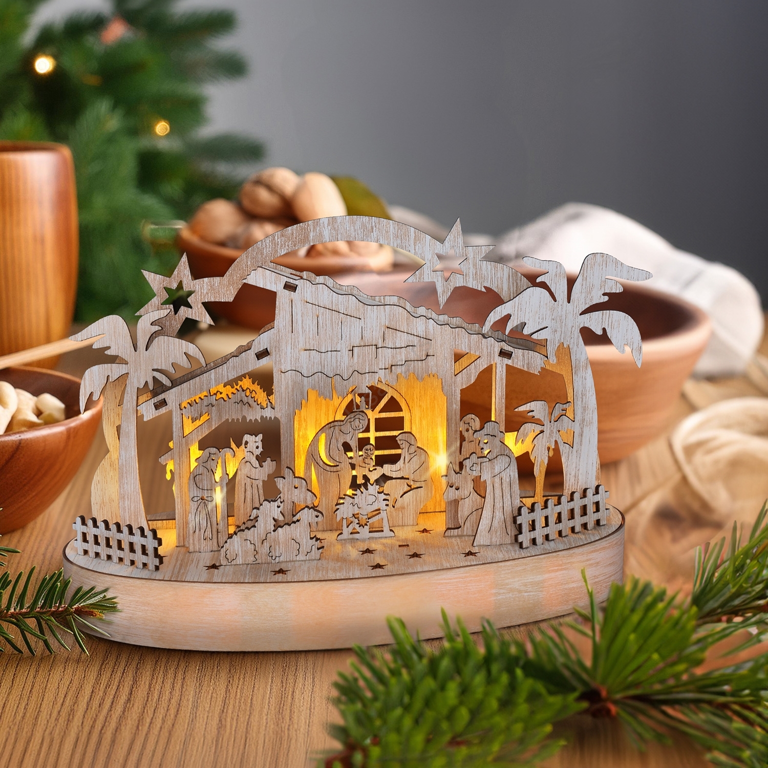 LED božićna dekoracija LED/2xAA/topla bela betlehem