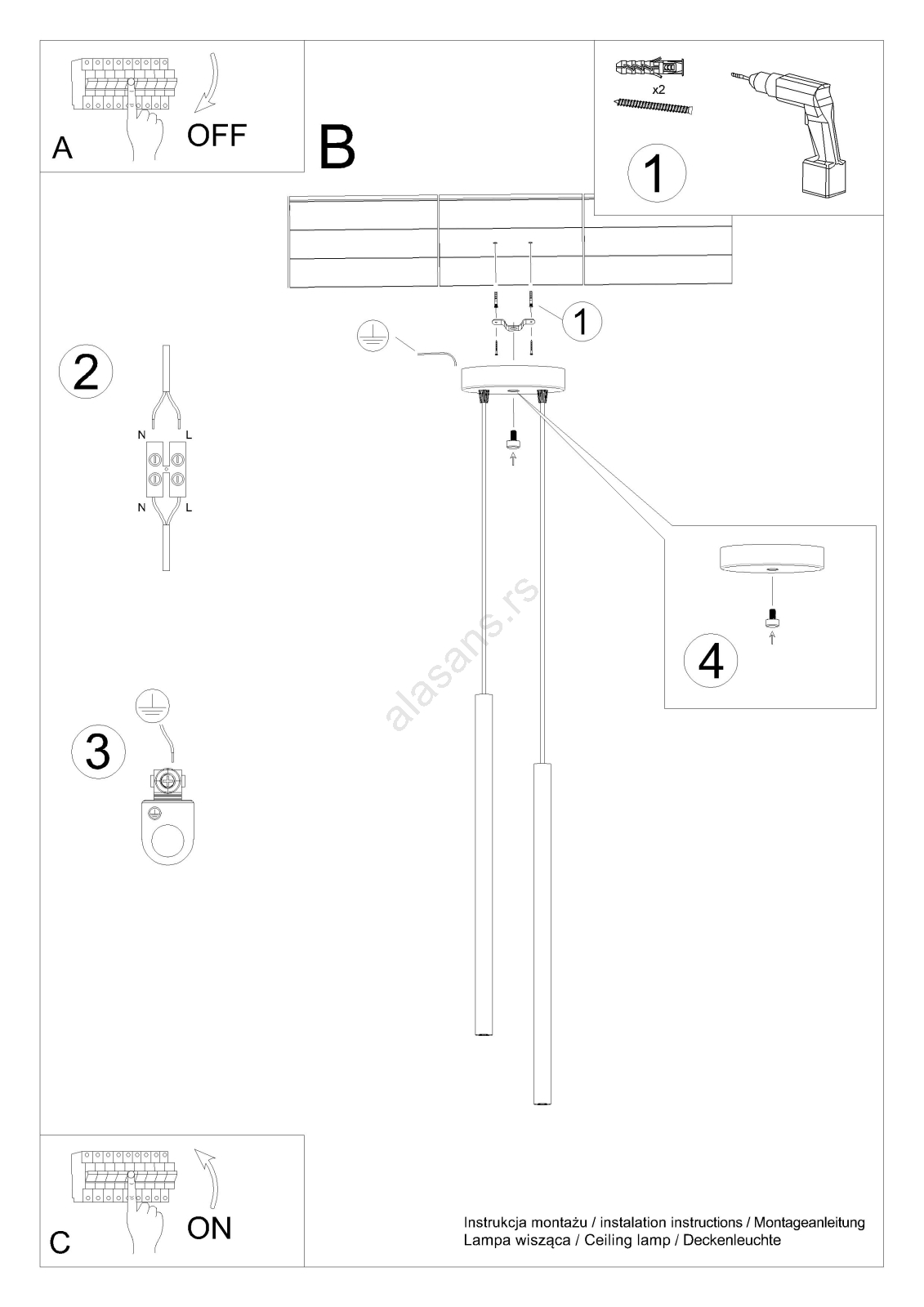 Sollux SL.1304 - Luster na sajli PASTELO, 2xG9/8W/230V, crne boje | Alasans