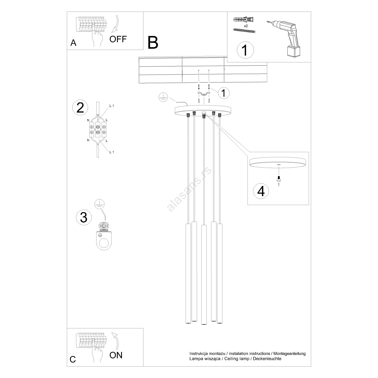 • Luster na sajli PASTELO 5xG9/8W/230V bukva