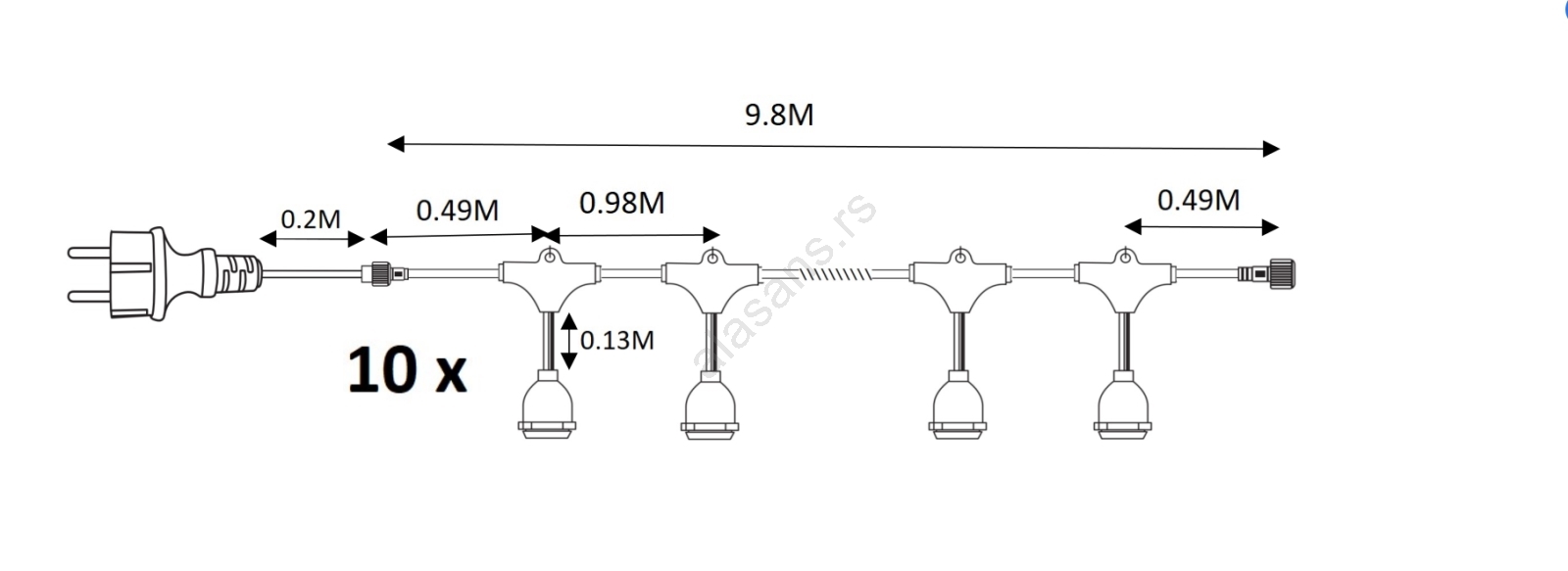 • Lanci se mogu povezati do 100 m (maks. sijalica 2 W).