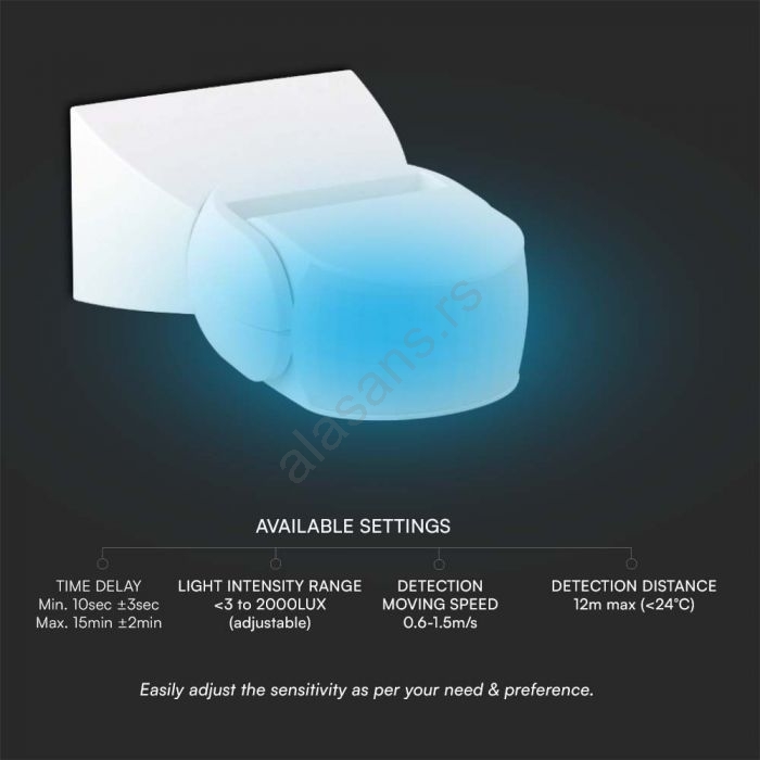 Spoljašnji infracrveni senzor pokreta 180° 230V IP65 beo | Lampomanija