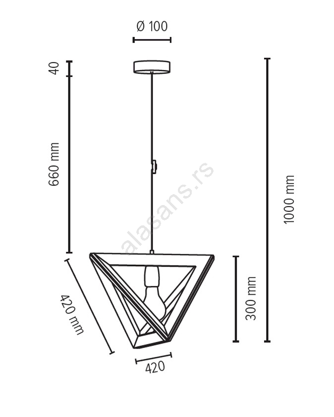 Luster na lanku TRIGONON 1xE27/60W/230V matni hrast