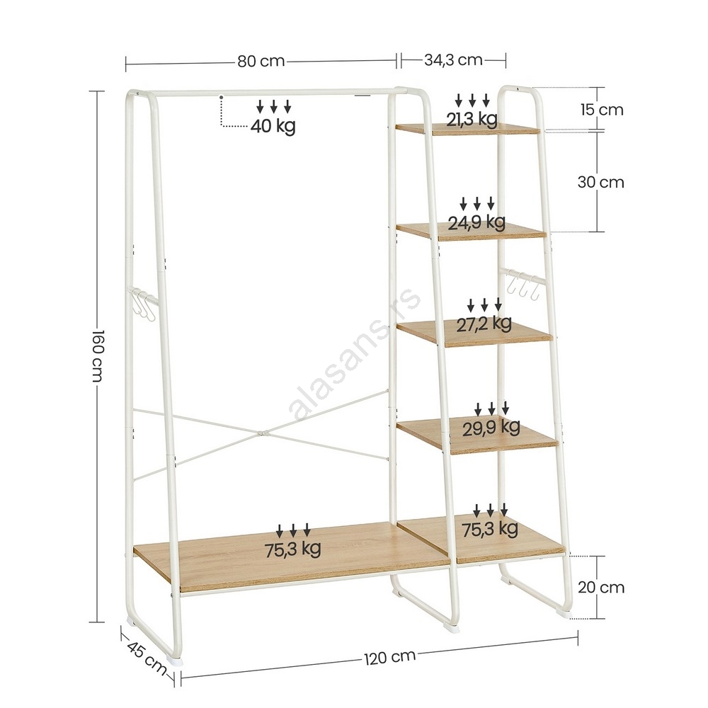 • Okačite jakne, košulje i pantalone na gornju prečku duž cele dužine, na 6 odlagarnih polica smestite torbe, obuću, kutije,  šešire, šalove, kišobrane i druge neophodne stvari.