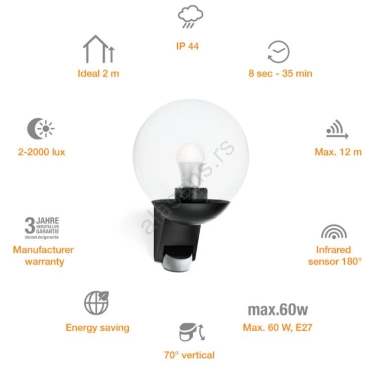 STEINEL 005535 - Spoljno zidno svetlo sa senzorom L585S, 1xE27/60W, crno, IP44 | Alasans