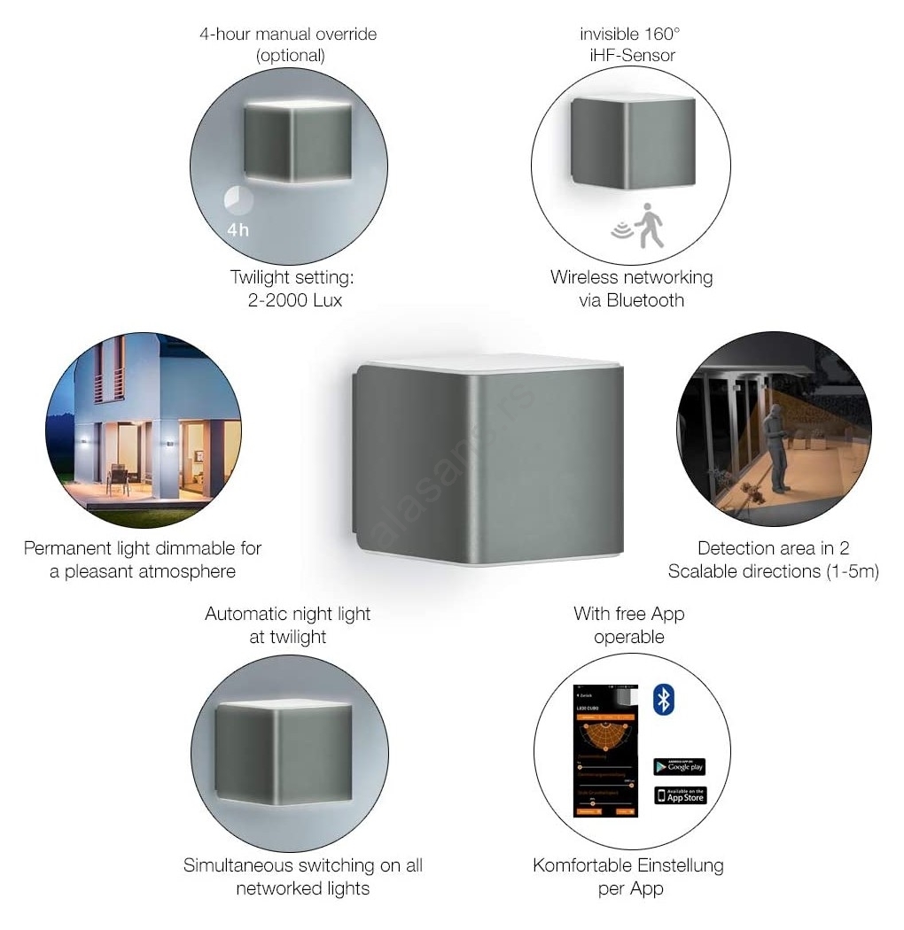 • Svetlo se upravlja besplatnom aplikacijom STEINEL SmartRemote (kompatibilno sa Android i iOS) preko Bluetooth-a.