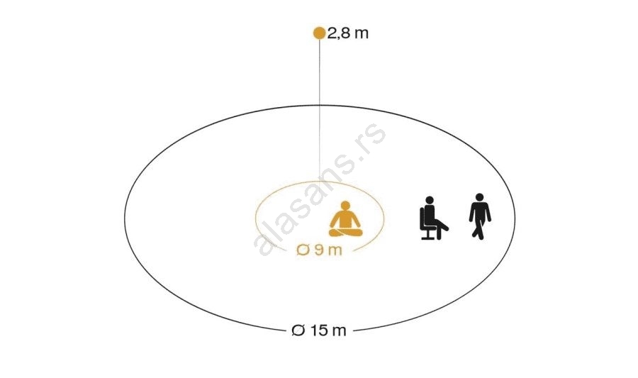 • Visoko precizan visokofrekventni detektor sa zonom detekcije prisustva Ø 15 m (177 m²).