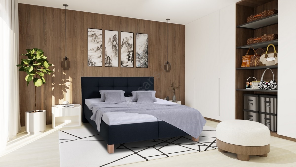 • Tapacirani bračni krevet sa slobodno postavljenim dušecima odlikuje se detaljno obrađenim, elegantno prošivenim uzglavljem.