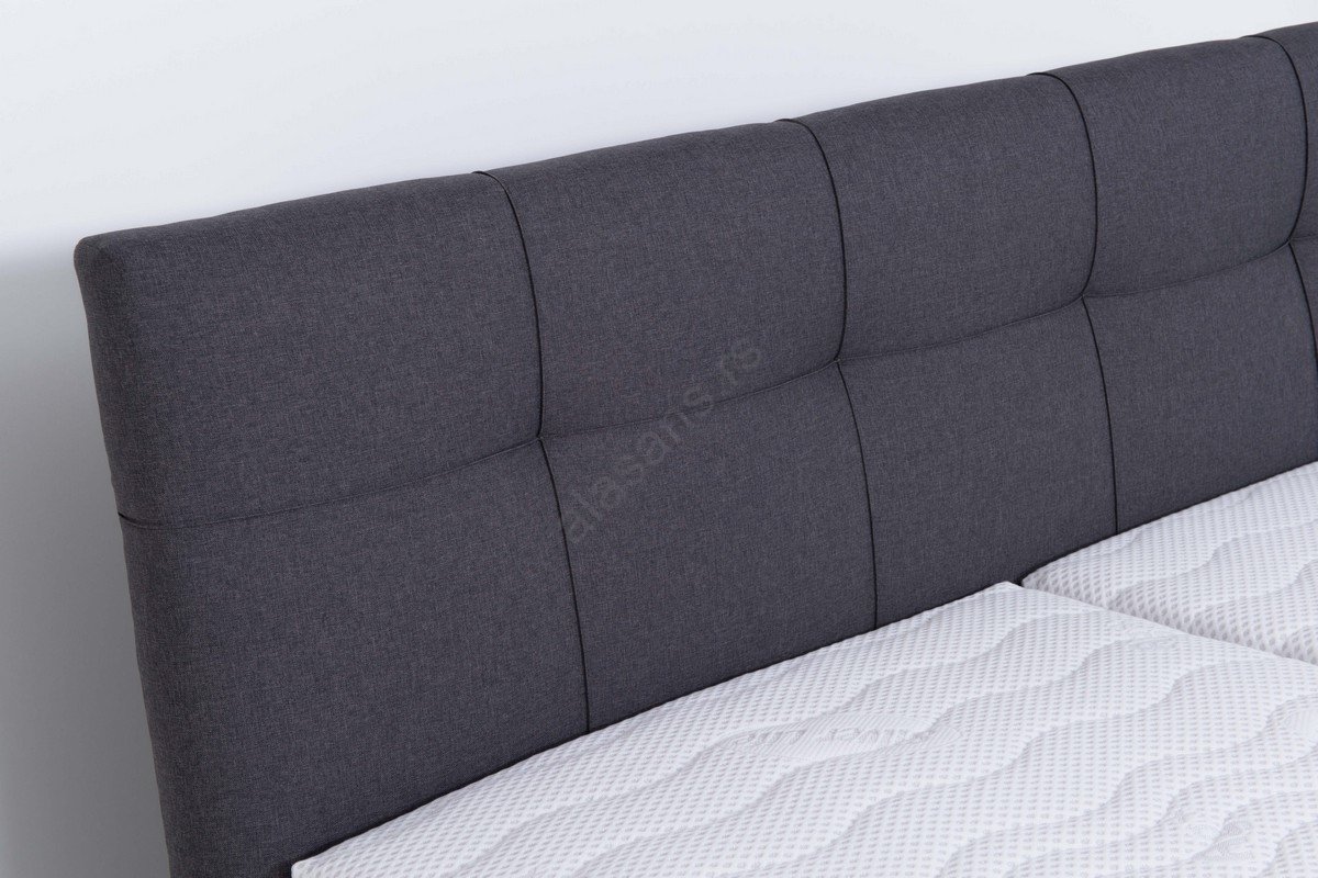 • Tapacirani bračni krevet sa odvojenim dušecima krasi detaljno obrađeno, elegantno prošiveno uzglavlje.