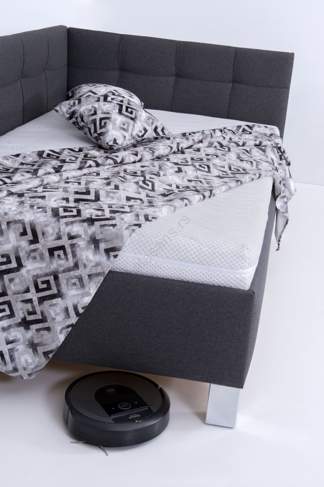 • Stabilne i dizajnerski detaljno obrađene hromirane noge visine 15 cm ne samo da naglašavaju moderan izgled kreveta, već omogućavaju lako čišćenje, čak i uz pomoć robotskog usisivača.