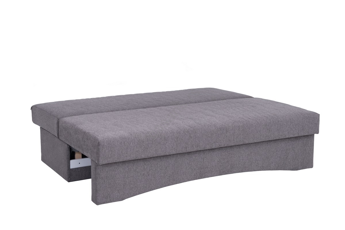 Tapacirani trosed na rasklapanje PAUL za svakodnevno spavanje, bez naslona za ruke, siva
