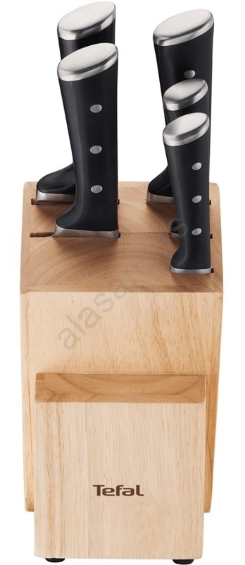 • Vrhunski set kuhinjskih noževa marke Tefal u drvenom bloku sa 5 otvora i 5 noževa.