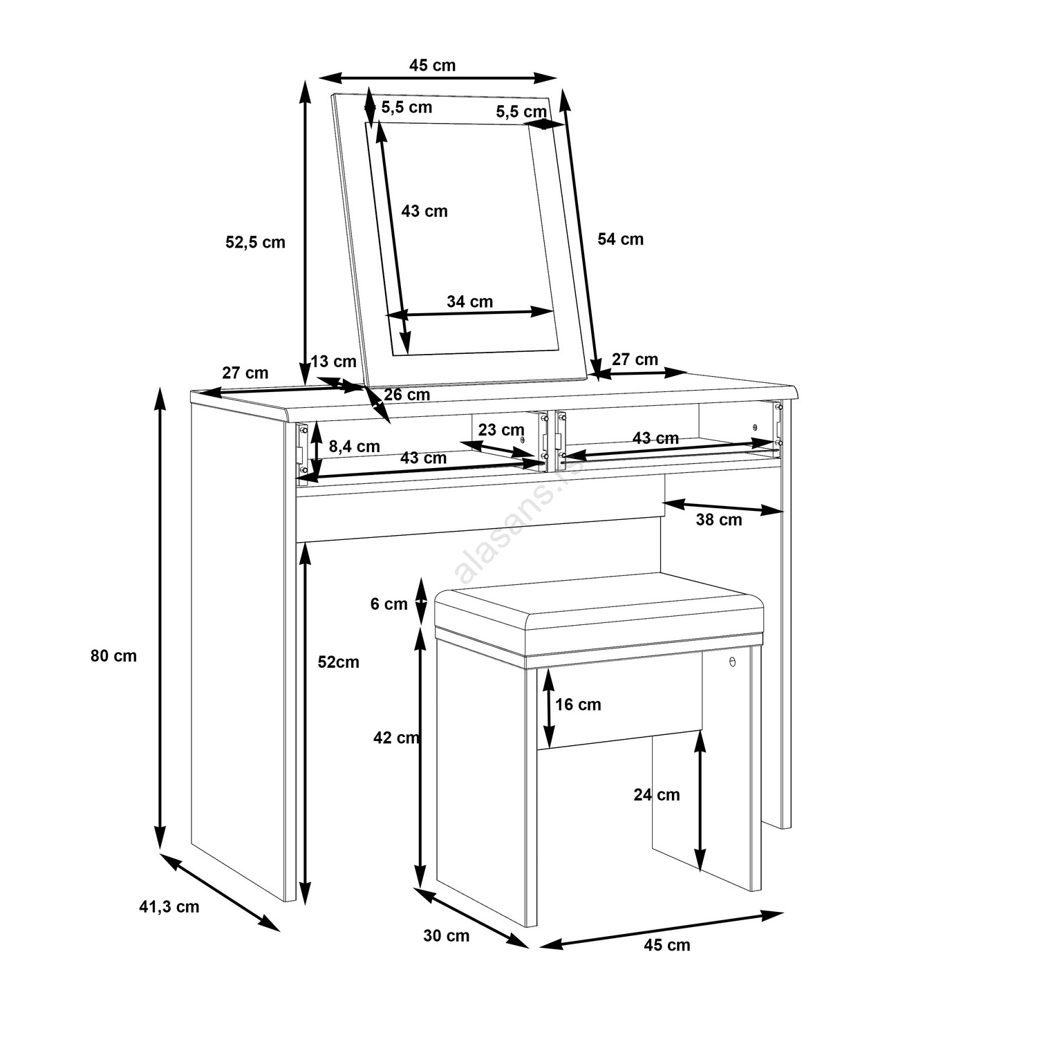 Toaletni sto ERO + tabure braon/crna | Alasans